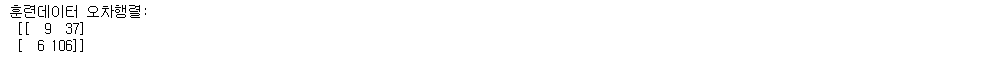 print("훈련데이터 오차행렬:\n", confusion_train)
