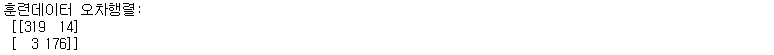 print("훈련데이터 오차행렬:\n", confusion_train)