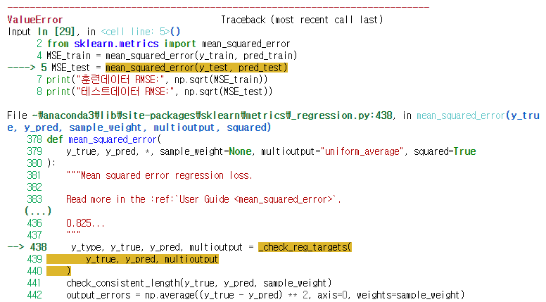 MSE_train은 멀쩡히 작동하는데, MSE_test 코드에서 말썽이다.