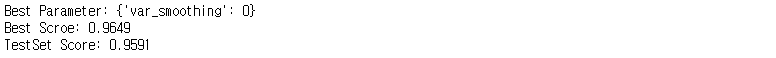 GaussianNB의 주요 하이퍼파라미터는 var_smoothing이다.