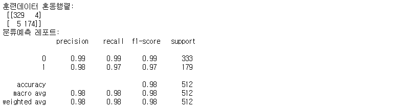 print("훈련데이터 혼동행렬:\n", confusion_train)