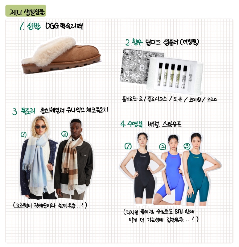 (하지만 이번 리스트를 친구들한테 보여주었을 때 목도리를 고른 사람은 한 명도 없었다.😭)