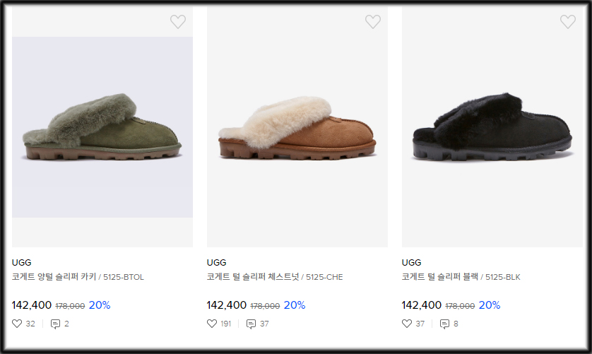 어그 털슬리퍼 모델은 정말 많다.