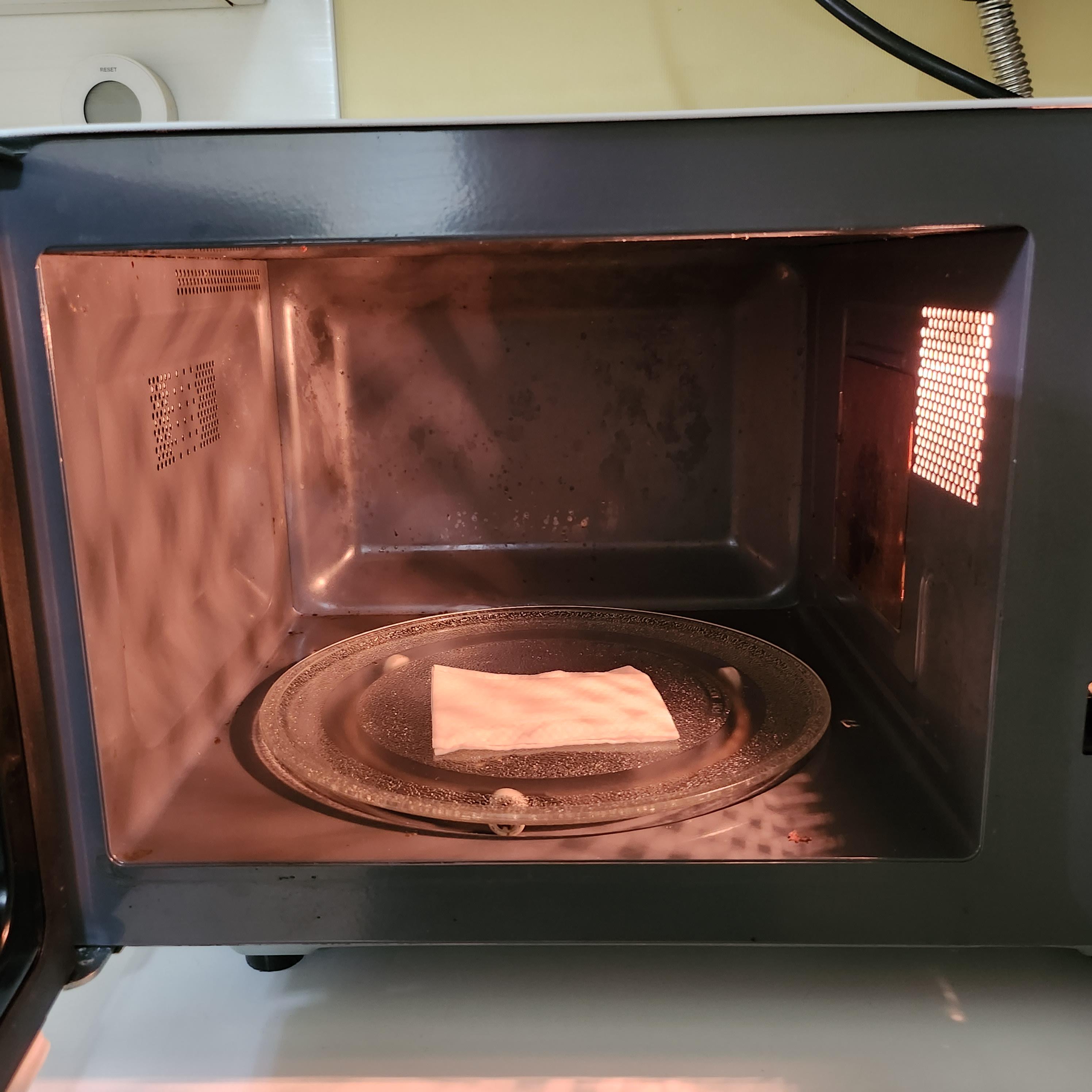 클리너 포장을 벗겨내어 전자레인지에 넣어주었습니다.