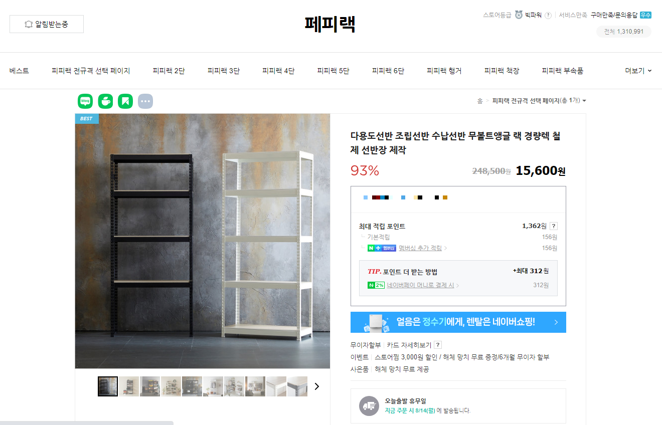 수납공간이 고민이신 분들은 피피랙 철제선반도 한 번 고려해보세요.