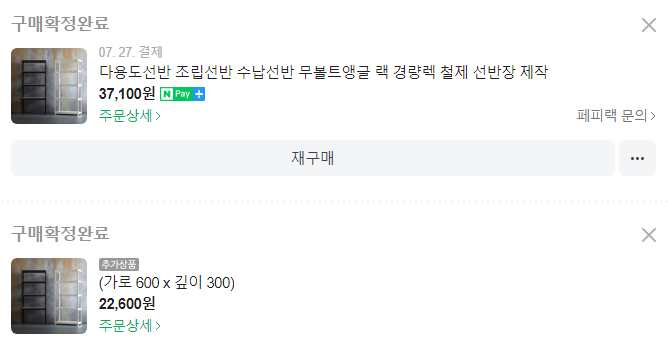 기본 2단 구성이라 선반 2개를 추가해주었습니다.