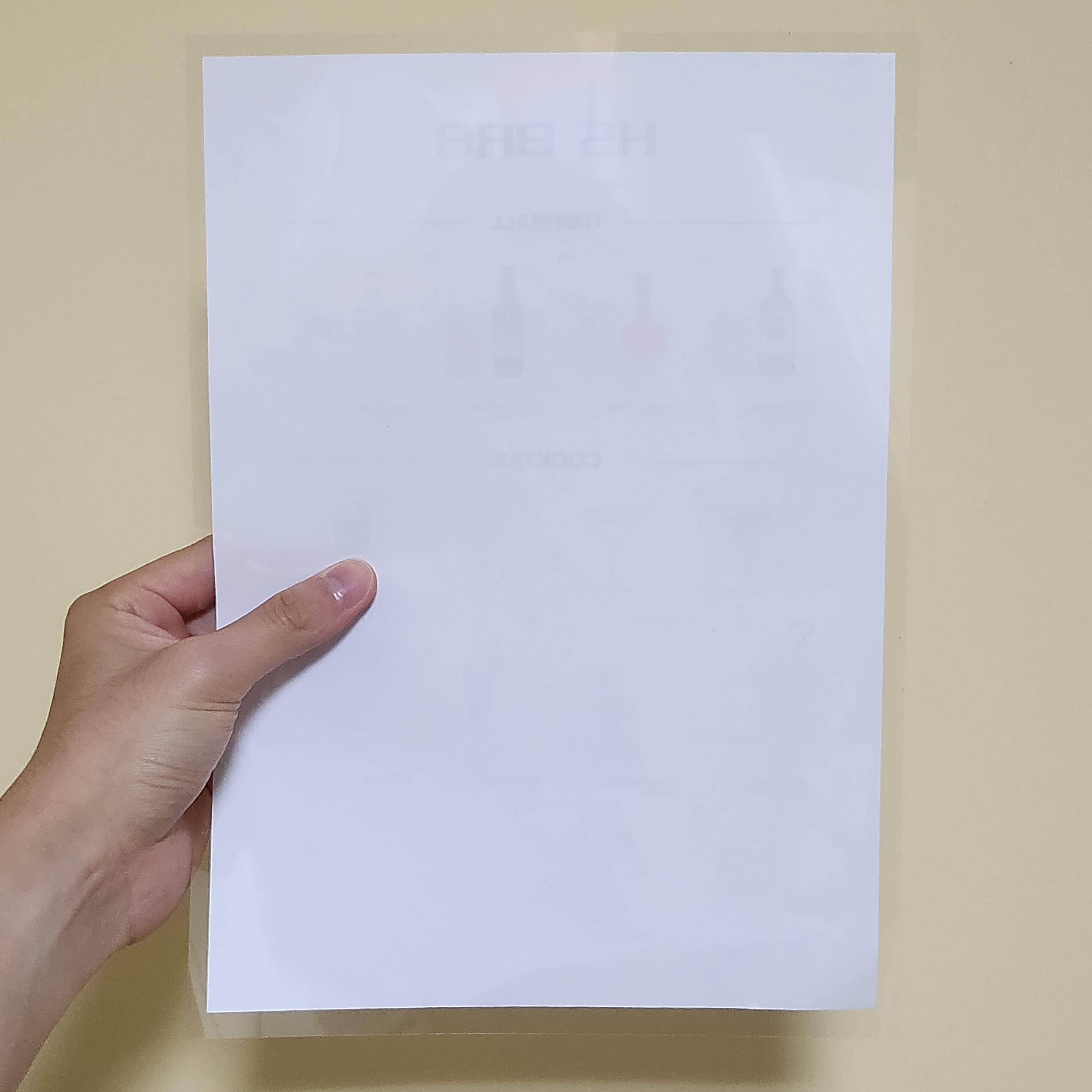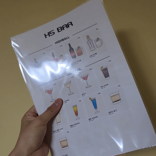 앞면은 얇은 비닐이고 뒷 면은 빳빳하고 매끈한 코팅지이기 때문에 앞면과 뒷면의 질감이 매우 다르다.