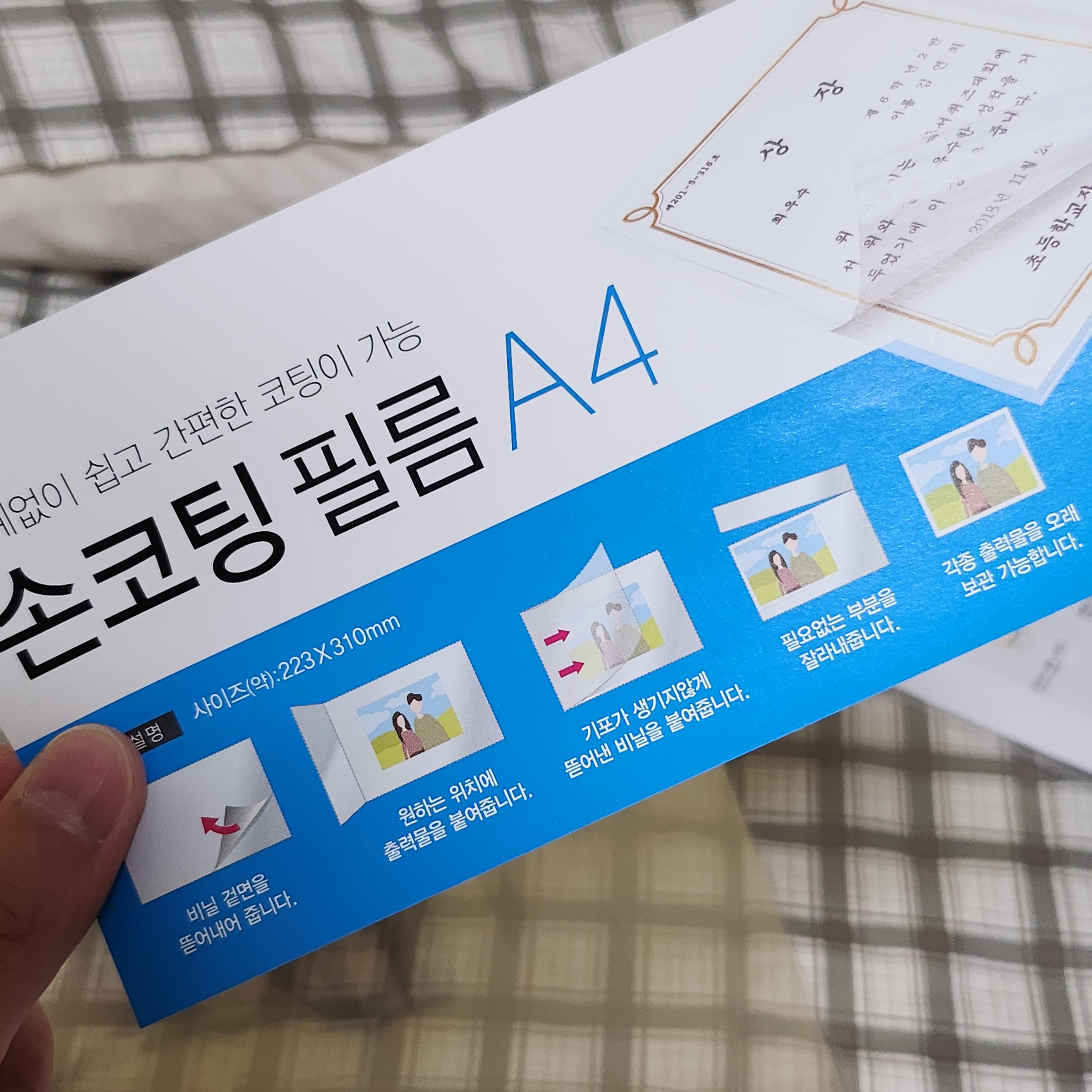 내가 구매한 손코팅 필름은 A4 사이즈이지만, A6 작은 사이즈의 코팅지도 살 수 있다.
