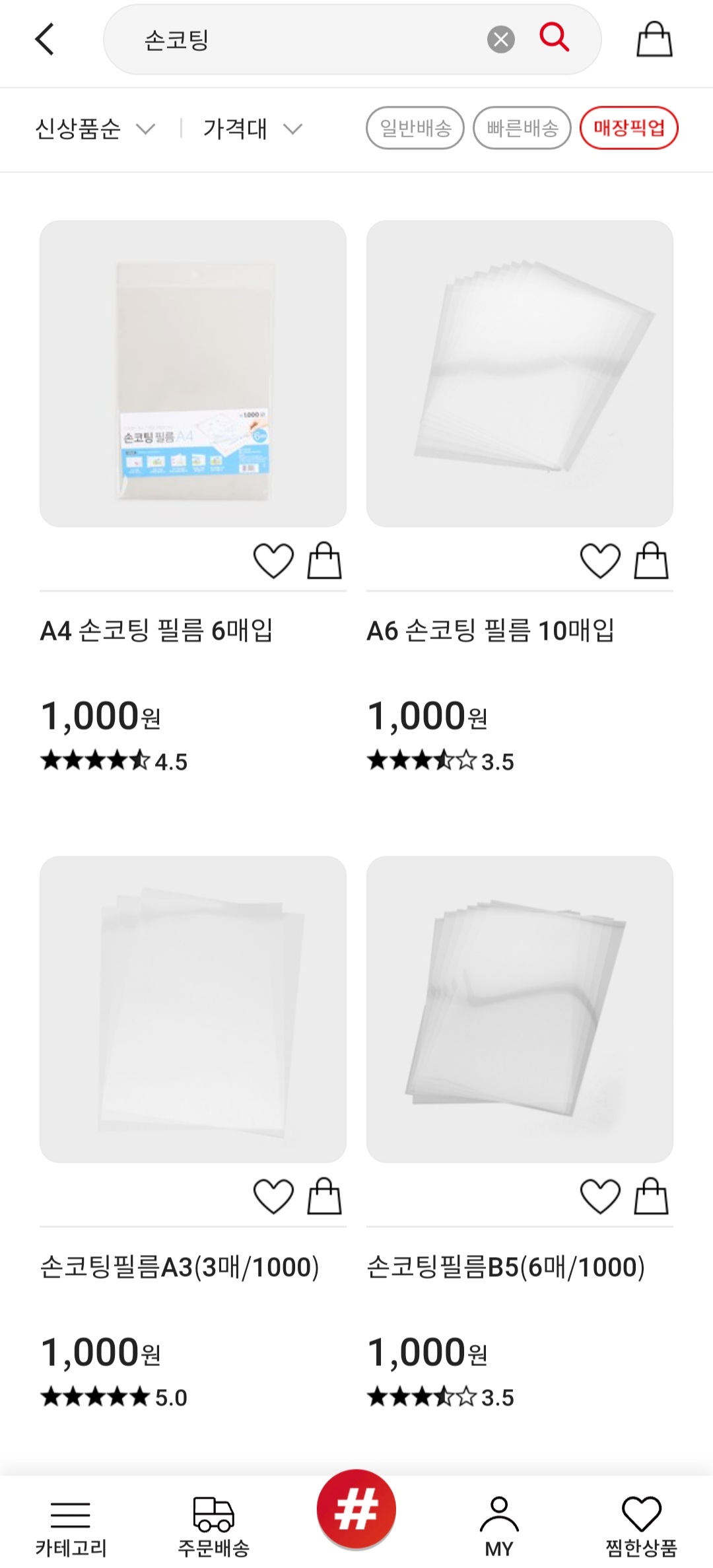 이 제품의 정식 품명은 손코팅필름A4(6매/1000)